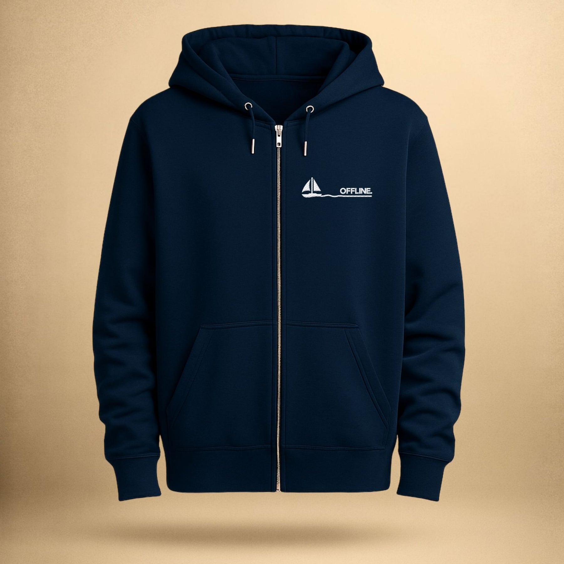 De Offline Zip Hoodie combineert maritieme minimalisme met hoog draagcomfort. De subtiele borduring op de borst benadrukt de heldere, rustige esthetiek van het ontwerp. Of het nu is voor koele avonden aan dek, ontspannen momenten in de haven of casual dagen aan land – deze hoodie begeleidt je betrouwbaar en stijlvol.